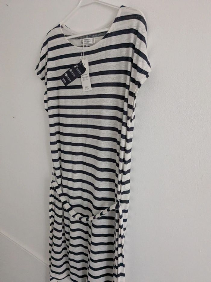 Robe en lin rayée blanche et bleu L - photo numéro 5