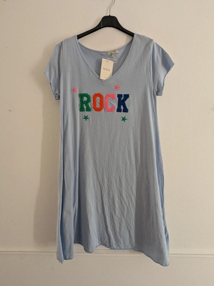 Robe d'été bleue clair rock TU made in Italy Inscription rock #inscriptionrock #rock #roberock