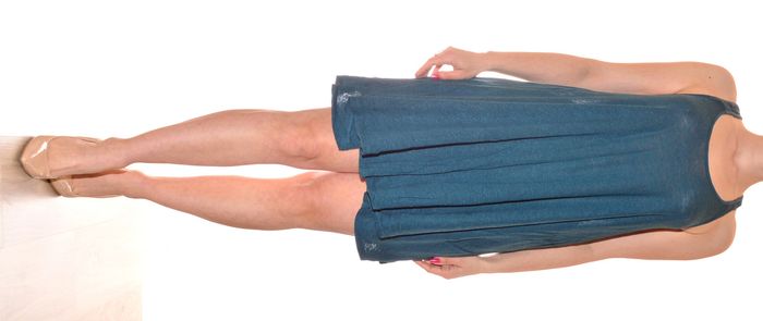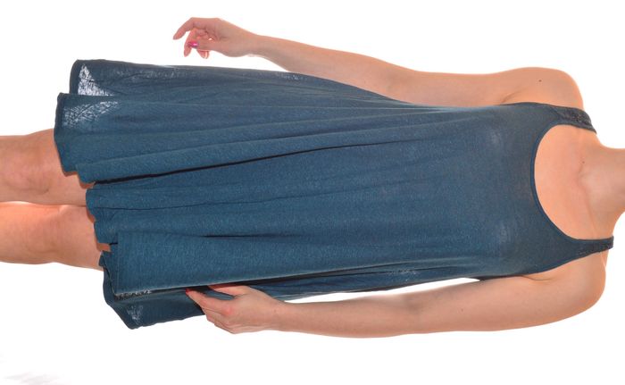 aisselle à aisselle élastiqué au maximum 54 cm au niveau de la taille 58,5 cm hanche 74 cm longueur 87,5 cm