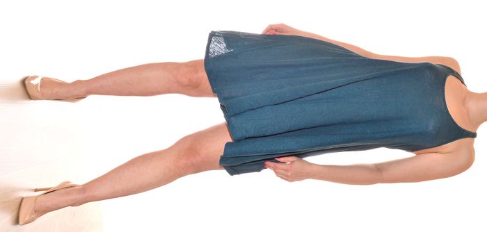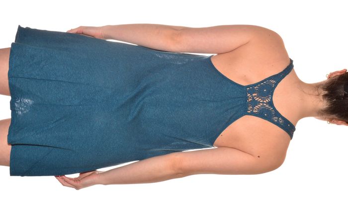 robe dos nu plage été évasée T38 légère dos nu sans manches bleu canard uni élastiquée - photo numéro 7
