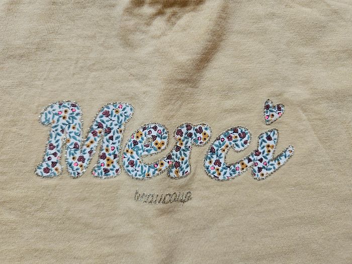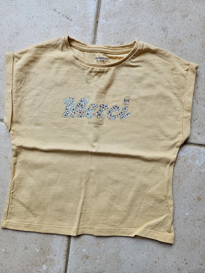 Tee-shirt manche courte 2ans Vertbaudet Peu porté Inscription "merci" fleuri #alexbennoah24mois