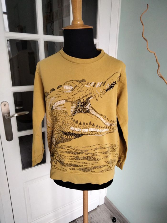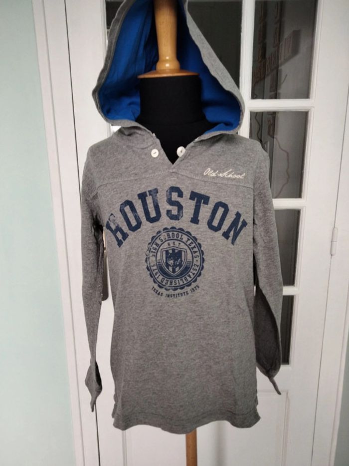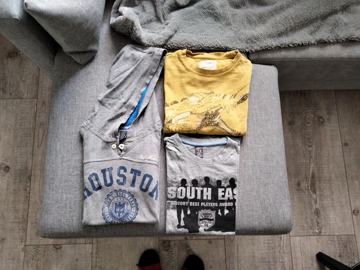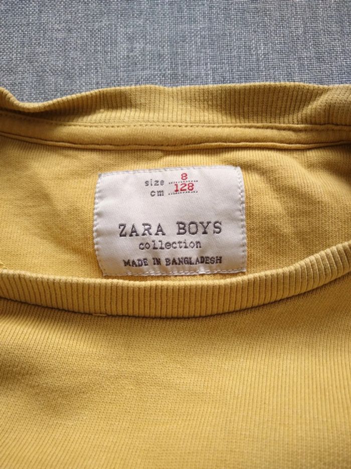 Lit de 3 hauts garçon Zara comprenant : - 1 tee-shirt gris taille 7/8 ans - 1 tee-shirt manches longues à capuche gris taille 7/8 ans - 1 pull moutarde taille 8 ans. Le tout en très bon état