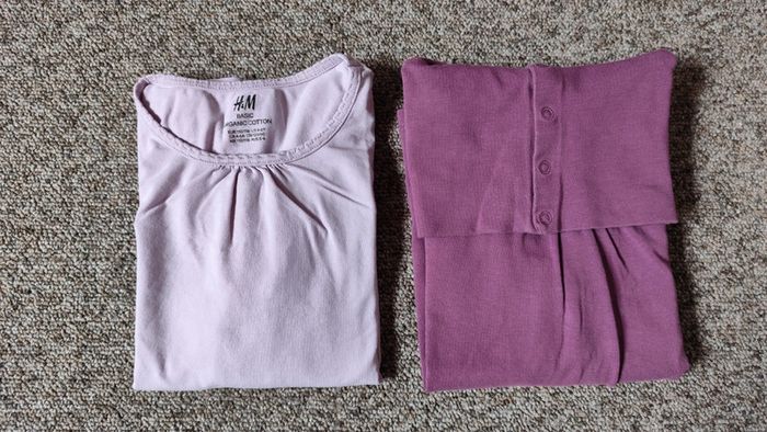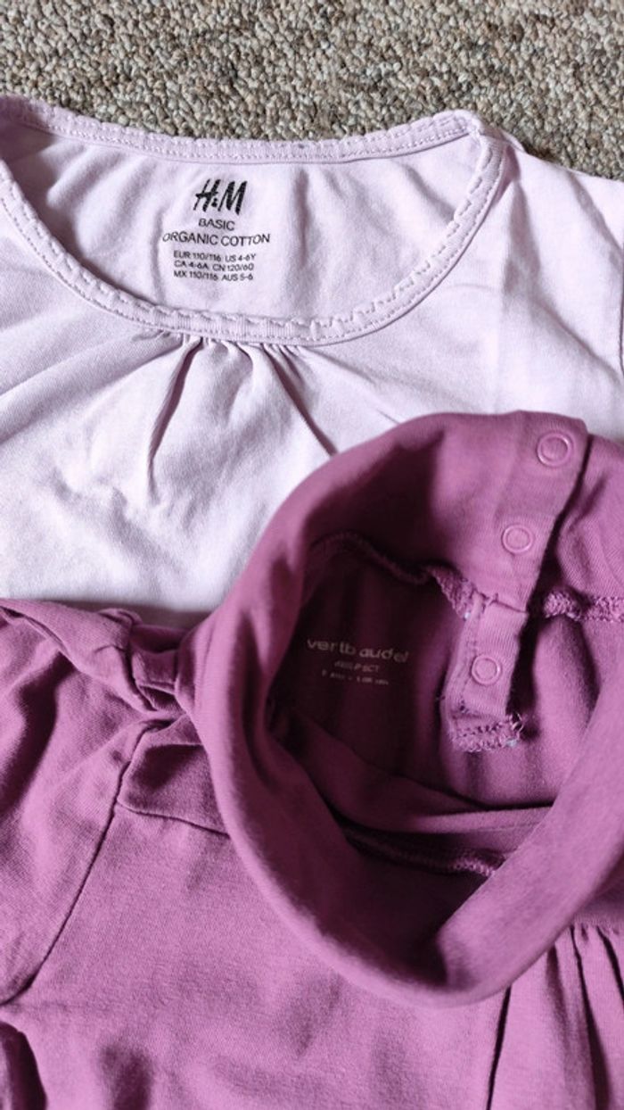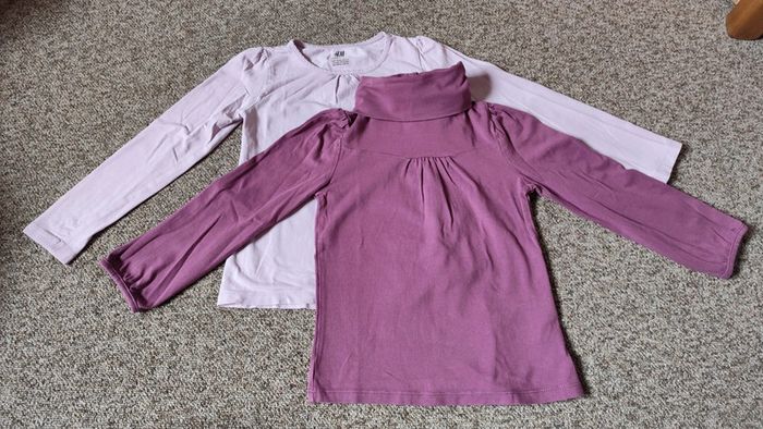 2 manches longues, 1 col roulé Les 2 dans la même gamme de couleurs Ils sont en très bon état, le clair a une tâche légère sur la manche (voir photo) Marques H&M et Vertbaudet