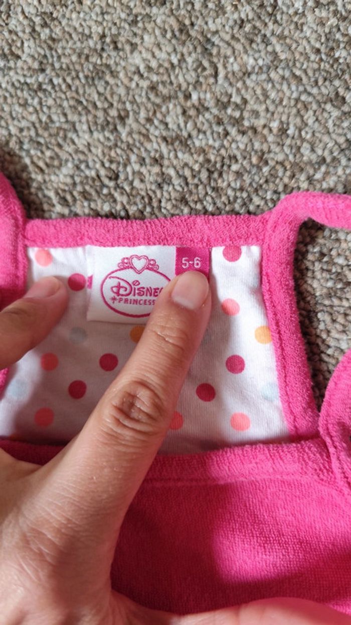Robe matière éponge (coton). Rose fushia. Bon état général. Disney princesse. Idéal plage