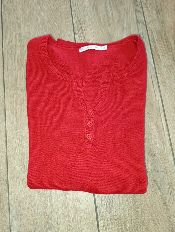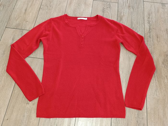 Très beau pull-over rouge avec 3 boutons sur la poitrine Tout doux Très peu porté