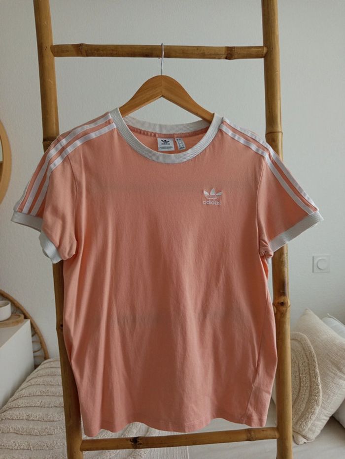 T-shirt Adidas rose et blanc taille 36 - photo numéro 1