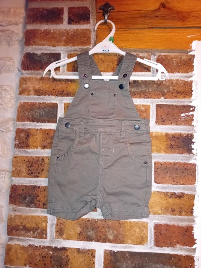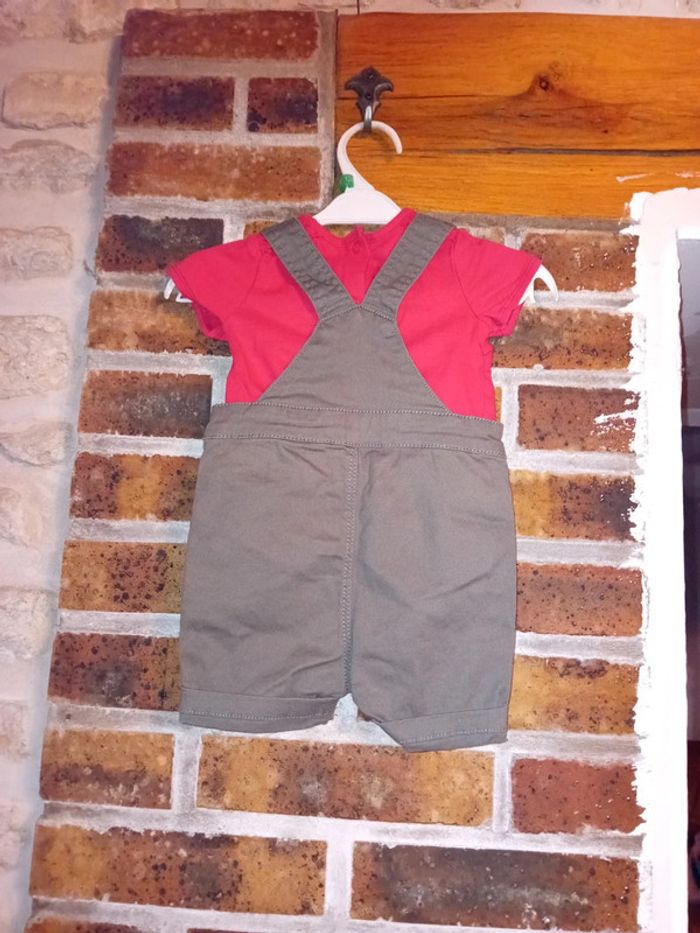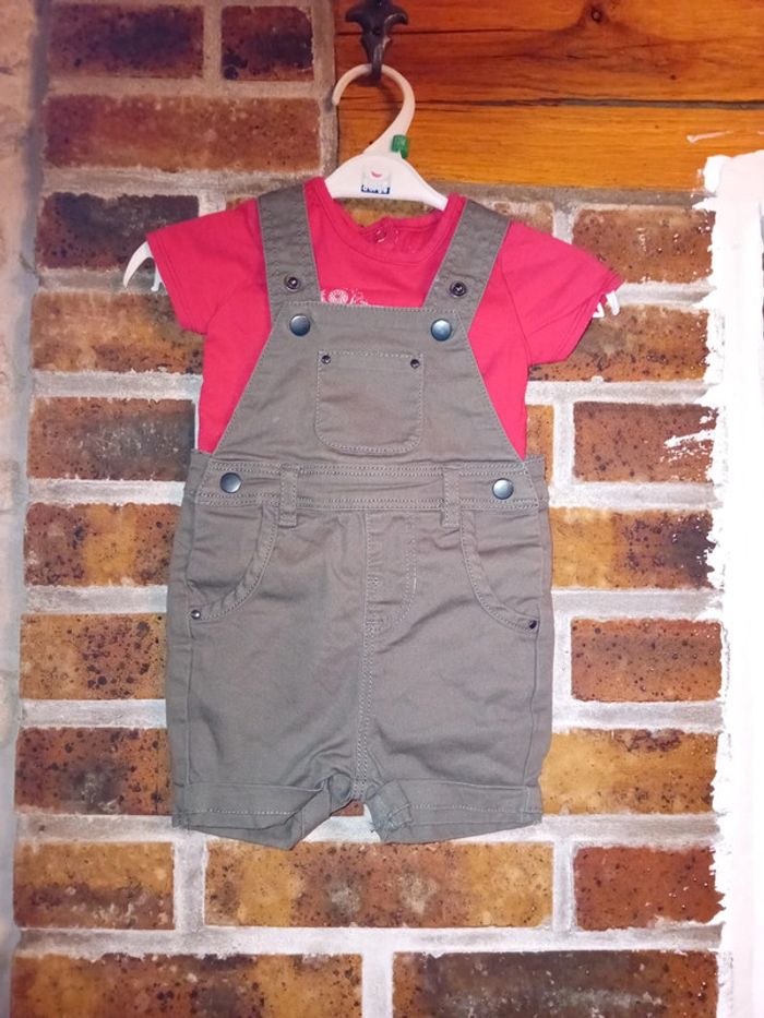 Salopette marque mot d'enfant couleur kaki Et tee shirt marque sucre d'orge taille 3 mois Très bon état #faufautine2021vetementbebefille3mois
