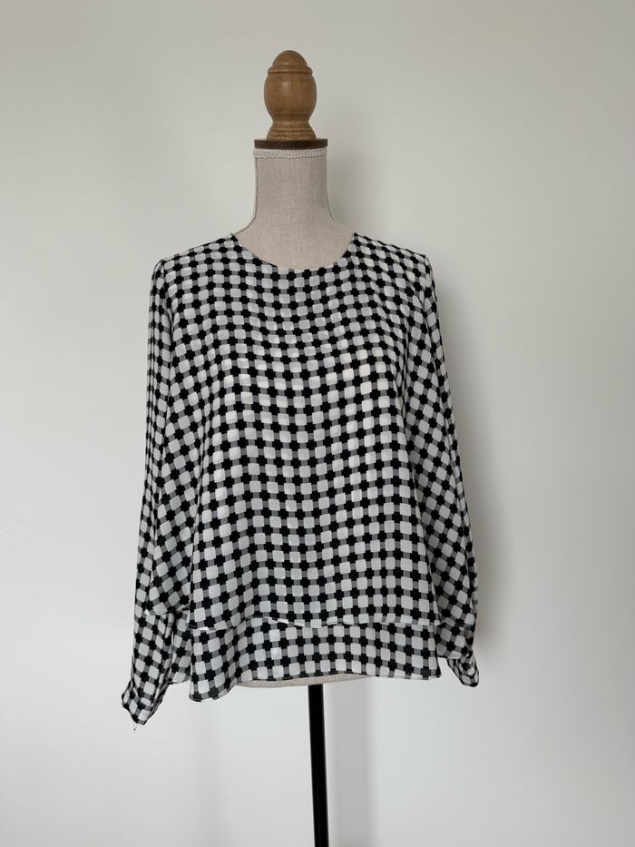Blouse femme maillot top haut chemisier t-shirt chemise volant noir blanc carreau fluide L - photo numéro 1
