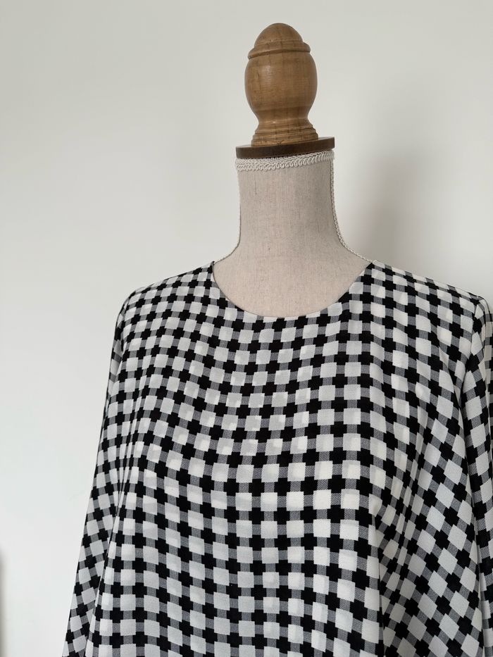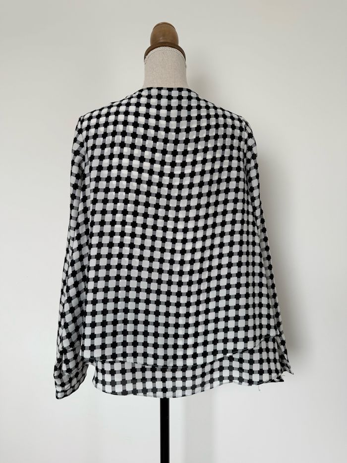 Blouse femme maillot top haut chemisier t-shirt chemise volant noir blanc carreau fluide L - photo numéro 4