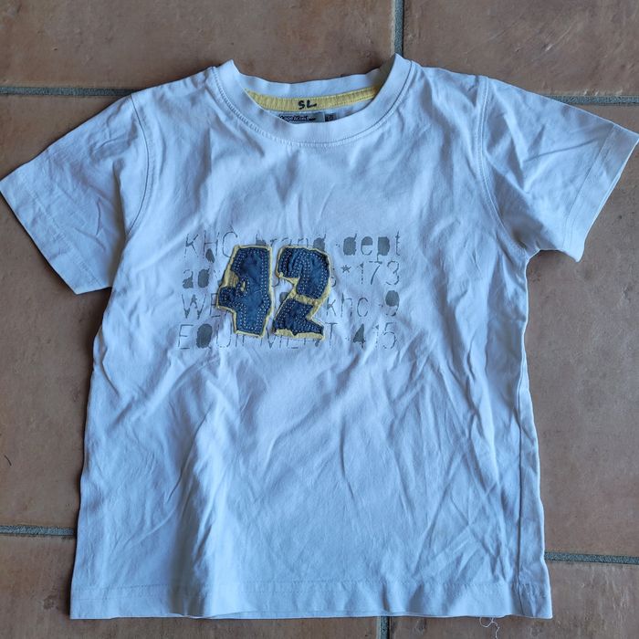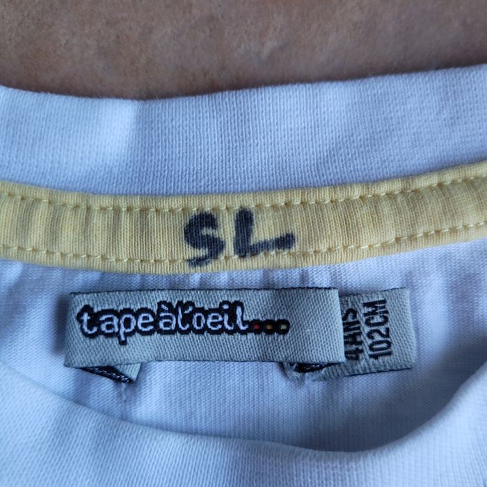 Tee-shirt TAO 4 ans blanc avec motif cousu. Porté mais encore en très bon état. Envoi dans la journée en mondial relay ou chronoshop2shop.