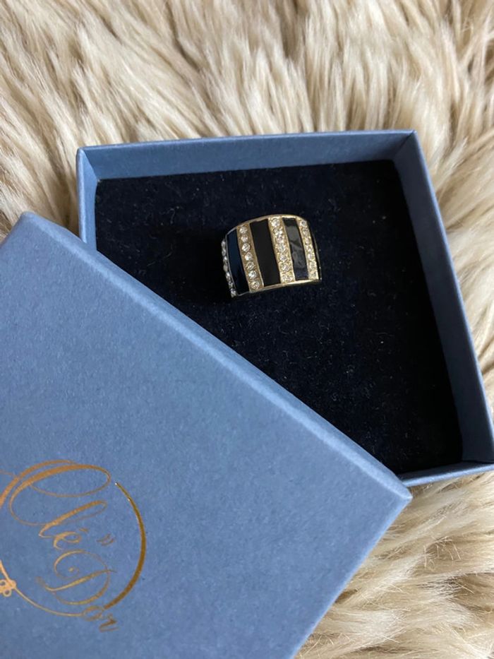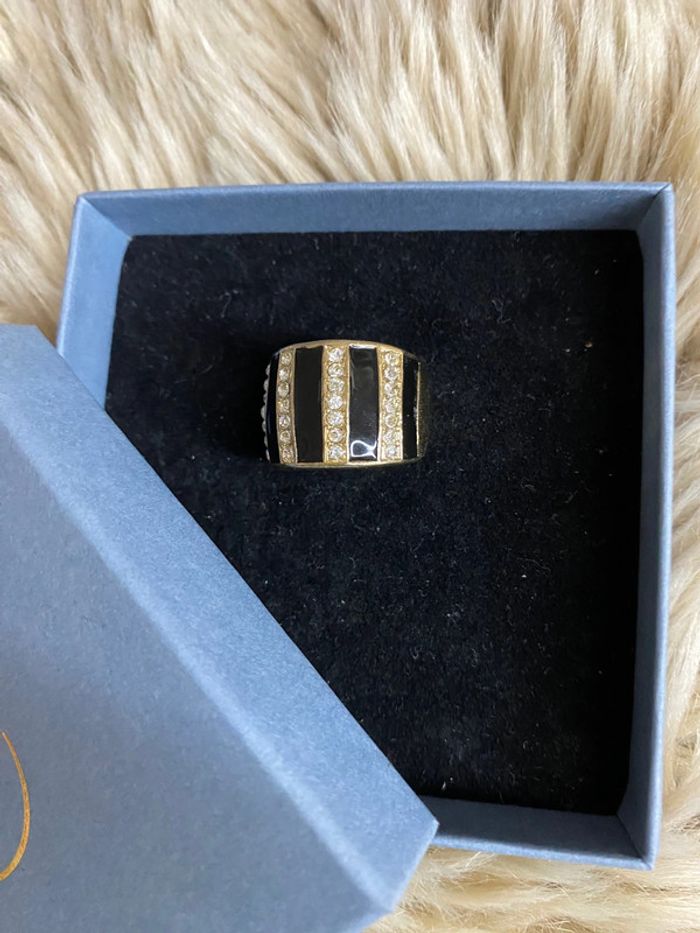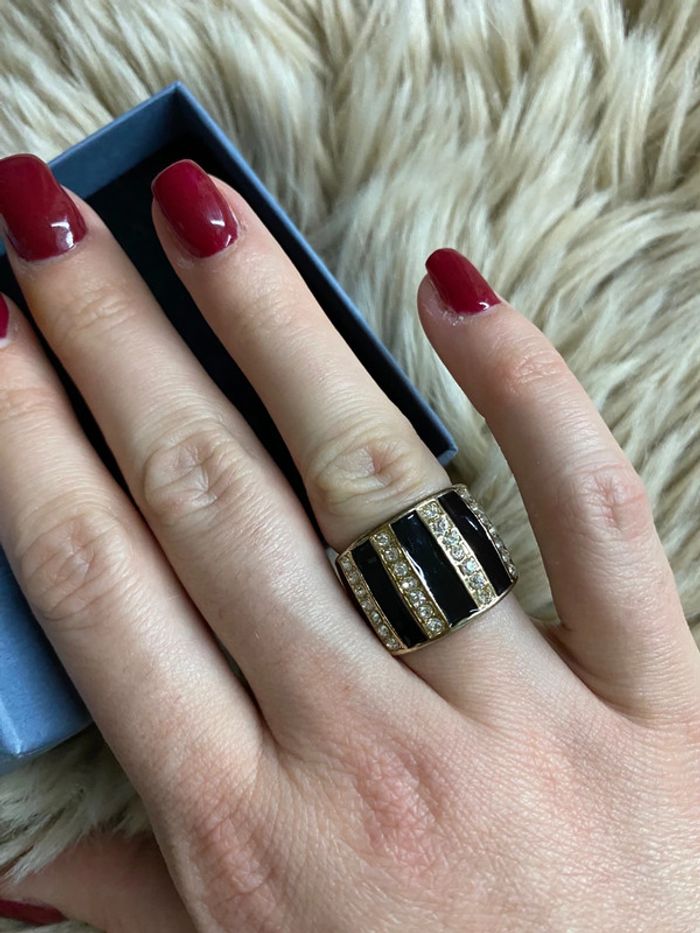 Superbe bague fantaisie noire dorée avec strass