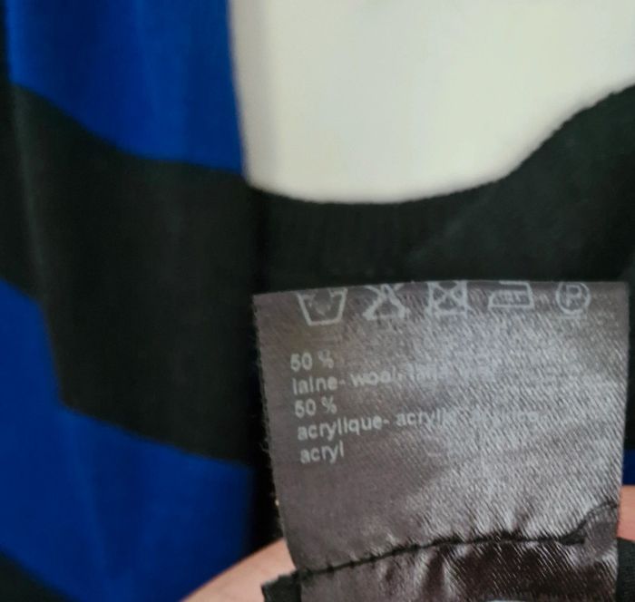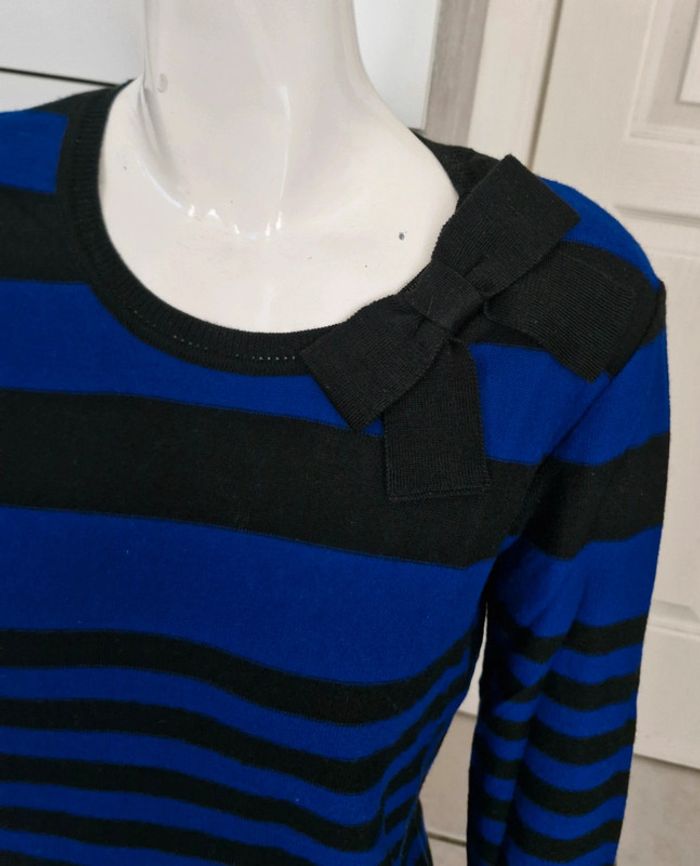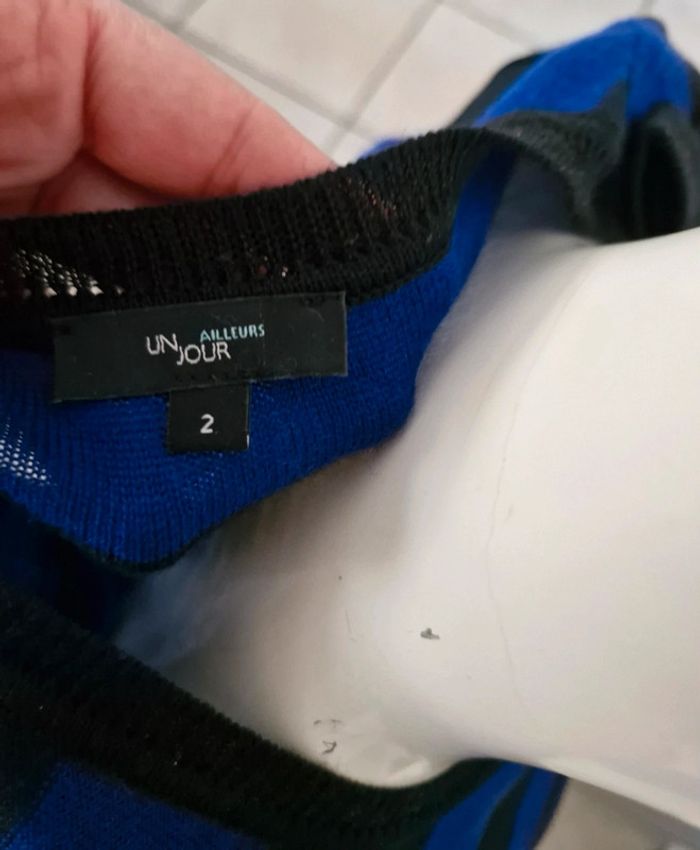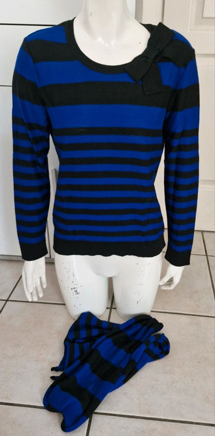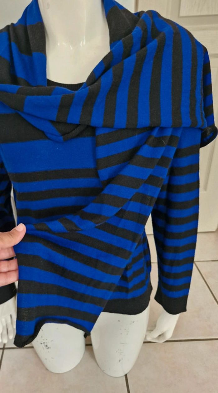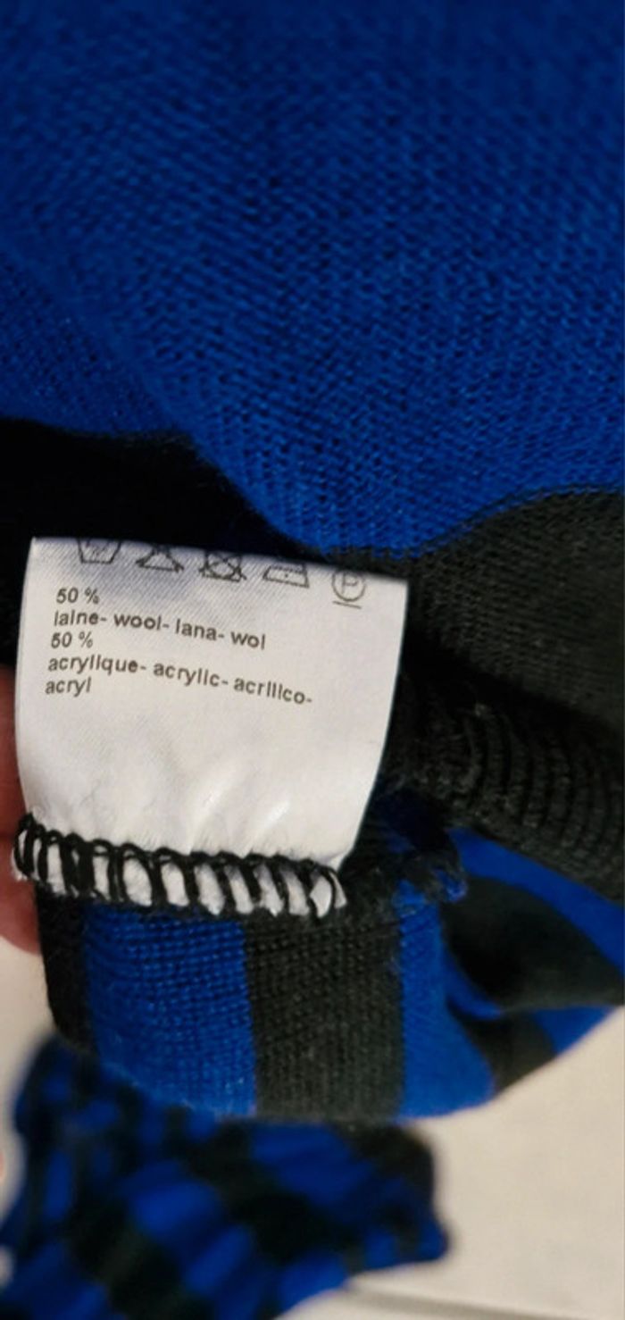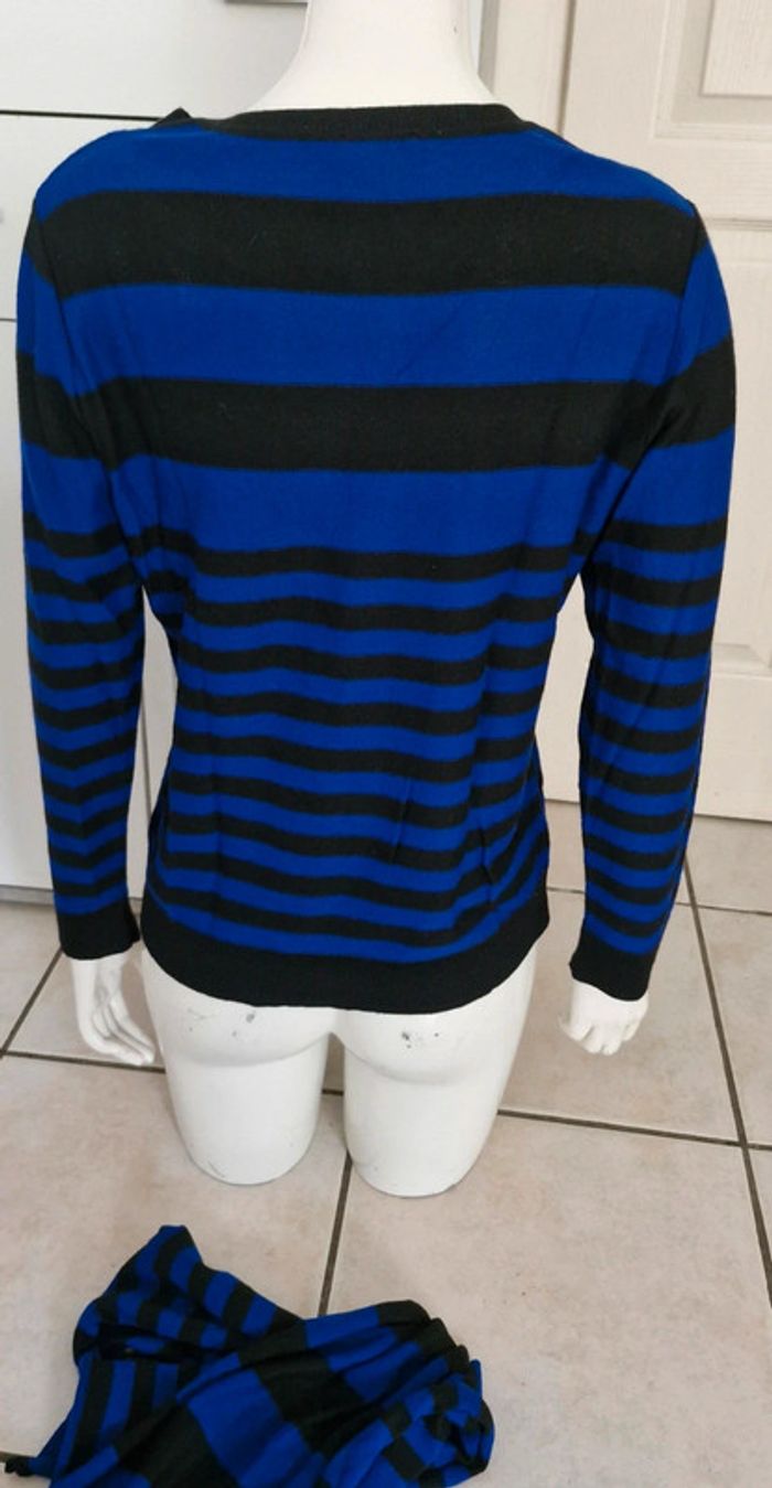 Ensemble #pull #femme avec #écharpe #cachecol #rayé noir et bleu électrique 50% laine #tailleM (taille2) de la maison #unjourailleurs En parfait état #tailleMmelodyriri31