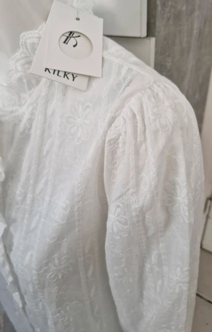 #blouse #chemise #chemisier #femme A broderie anglaise fleures #tailleS 100% coton Neuve avec étiquette #kilky Manque un bouton en haut mais y a un bouton de rechange! #tailleSmelodyriri31