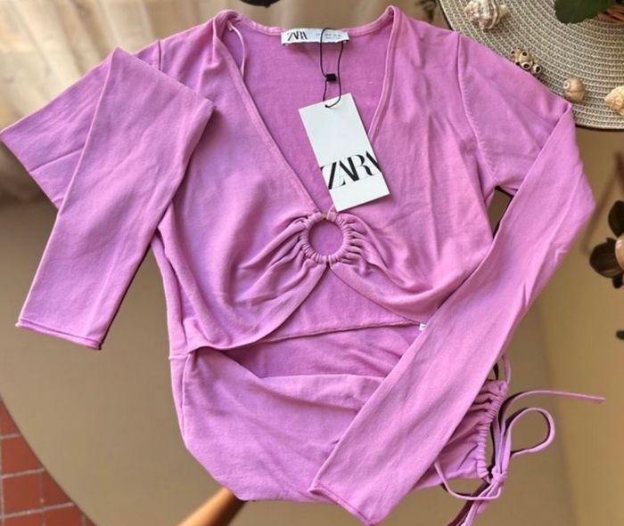Haut top Zara neuf Taille S, taille 36 Coloris mauve À manches longues 53 % viscose 47 % nylon Idéal pour offrir car étiqueté 📩Je réponds rapidement aux messages 📦Envoi rapide et soigné