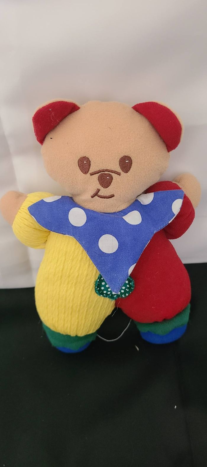doudou ours bandana pois , jaune rouge - photo numéro 1