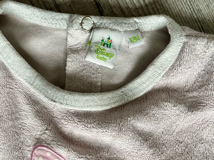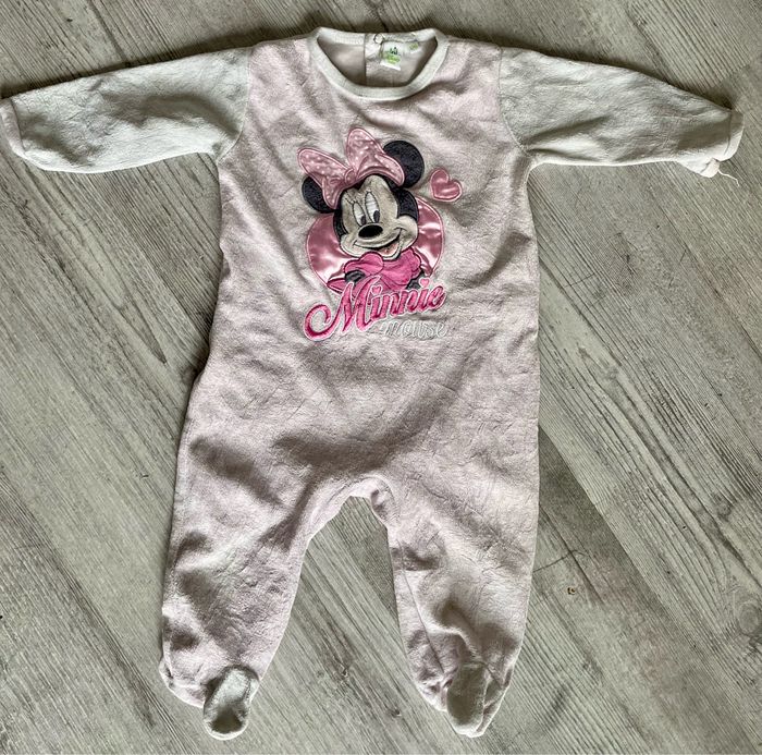 Pyjama une pièce de la licence Minnie de Disney Taille 12 mois Présence de petites taches sur l’arrière de la manche gauche Occasion, état satisfaisant