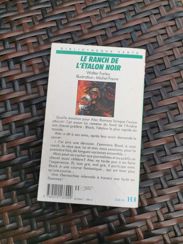 Le Ranch de l'Etalon noir, livre de Walter Farley, N°323. Livre au format poche, Bibliothèque verte, illustrations de Michel Faure, éd. Hachette jeunesse, traduit de l'américain par Jean Muray, 1989, 188 p., 153g. Le livre est en bon état, la couverture comporte des pliures. #leranch #etalonnoir #walterfarley #bibliothequeverte #livredepoche #hachette