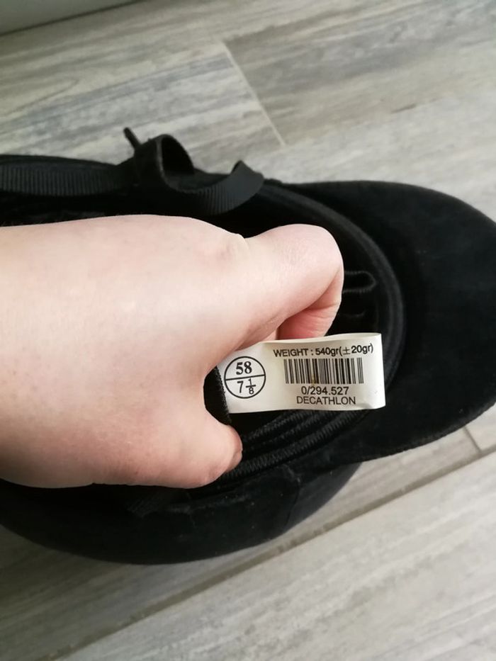 Casque d'equitation en velours noir, très élégant, taille 58 (7 et 1/8), poids 540 g (+/-20g), décathlon, en très bon état. #equitation #casquenoir #casqueveloursnoir #casqueequitation #casquecavalier