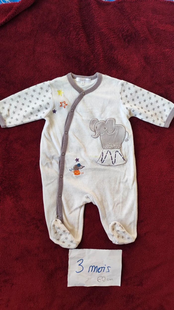 Pyjama grenouillère en velours taille 3 mois - photo numéro 1