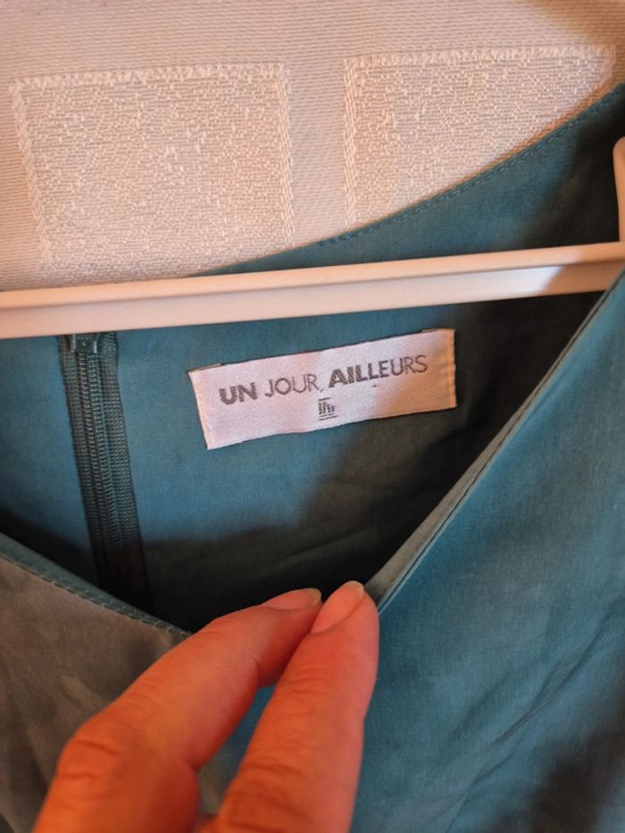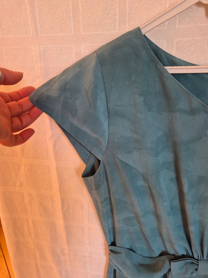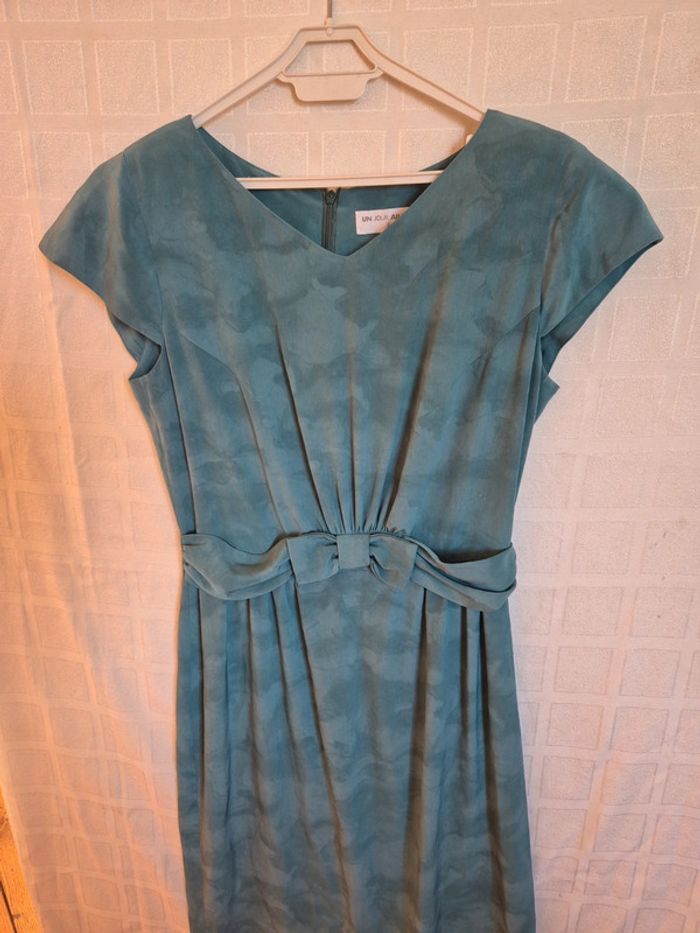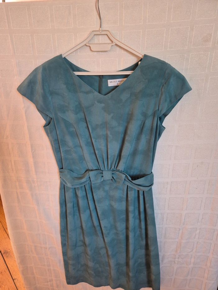 ⬇️mes autres annonces pour femme en taille 40 👉 #cg89femme40 une robe couleur vert d'eau avec un noeud devant avec des plis. Elle mesure 49 cm aux aisselles et 100 cm longueur. très bon état - taille 40 - marque un jour ailleurs #robe #taille40 #unjourailleurs #robechic