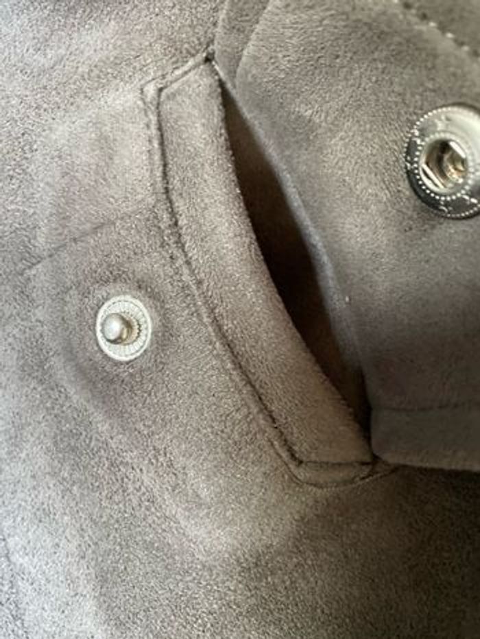 Blouson perfecto suédine gris Entièrement doublé Taille XS Jennyfer Carrure 37 cm Aisselle à aisselle 42 cm Longueur dessous de manche 42,3 cm Largeur à plat en bas quand il est fermé 40,4 cm