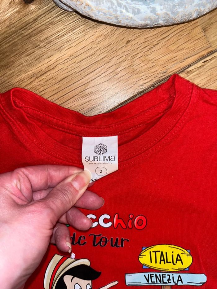 Joli t-shirt rouge Très bon état Motifs Pinocchio 2ans N’hésitez pas à faire un tour dans mon dressing je fais des prix sur les lots ☺️