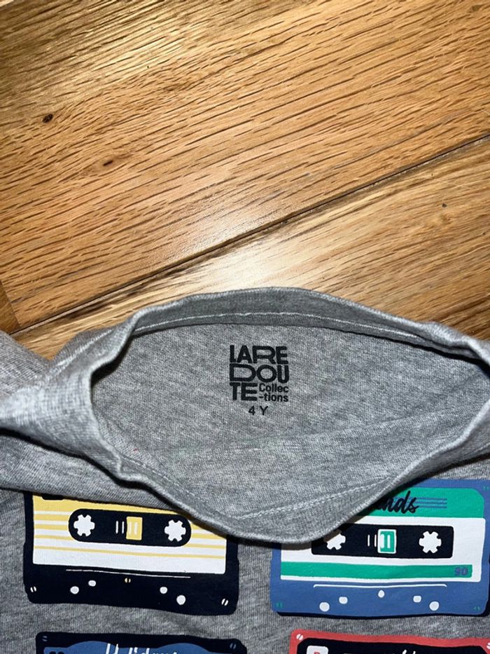 Joli t-shirt gris motif cassettes la redoute très bon état 4 ans/104cm - photo numéro 1