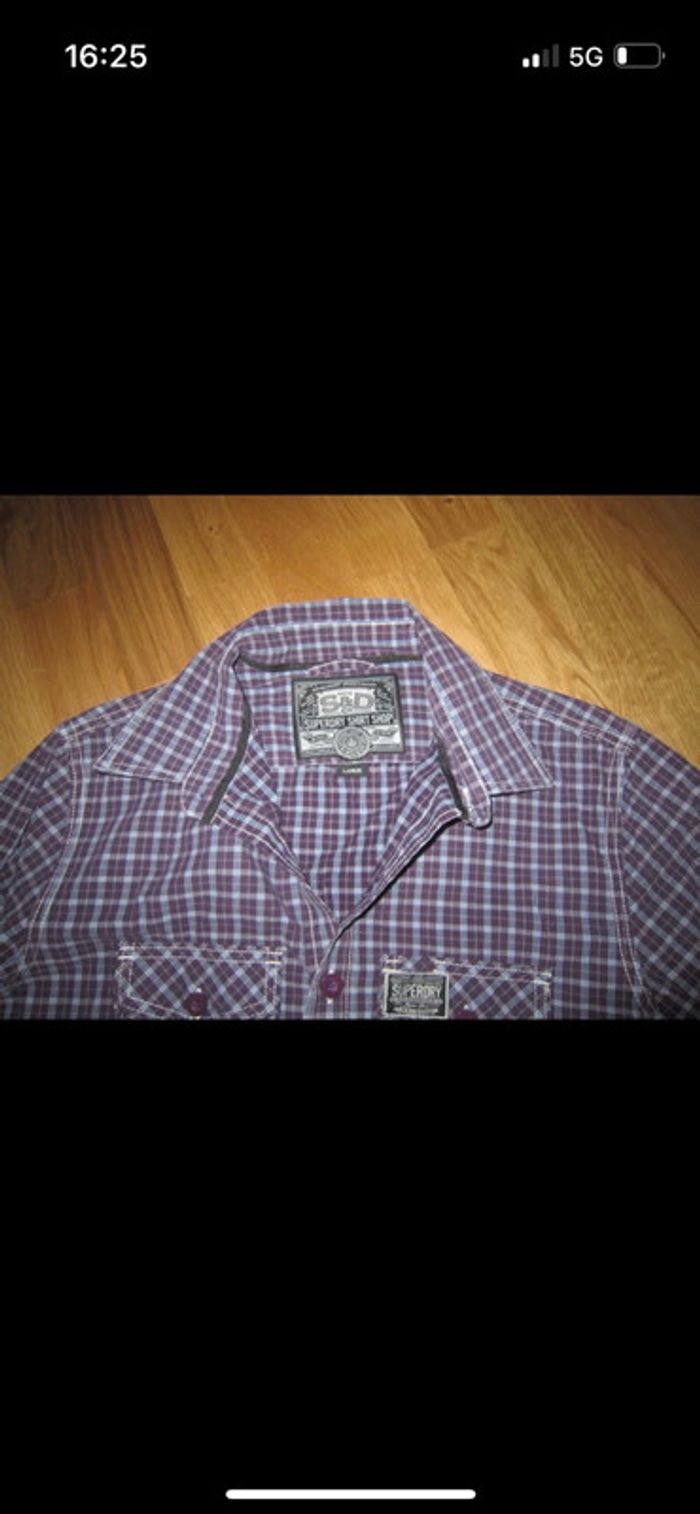 Belle chemise à carreaux bleu mauve superdry très bon état L - photo numéro 1