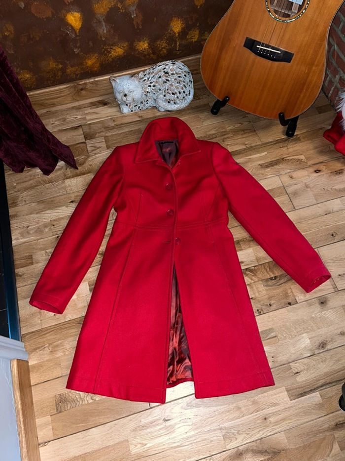 Beau manteau rouge cintré Sisley en laine très bon état 38(42 itzlien) - photo numéro 1