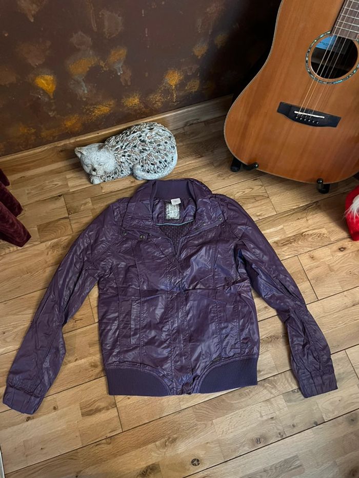 Veste blouson mi saison mauve très bon état berschka L - photo numéro 1