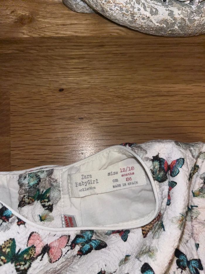 Robe blanche motifs papillons très bon état Zara 12-18mois/86cm - photo numéro 3