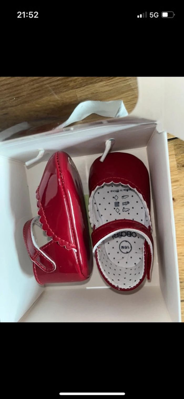 Jolies chaussures rouge vernie idéales Noël obaibi neuves 0-6 mois - photo numéro 1