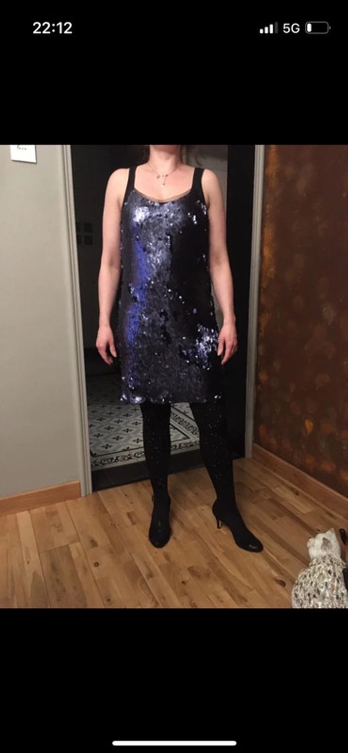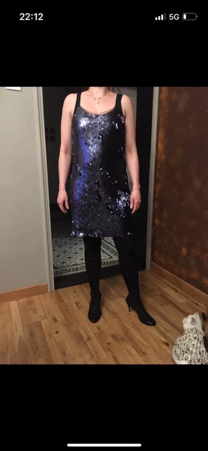 Belle robe de fêtes bleu marine paillettes mattes so allure neuve s - photo numéro 3