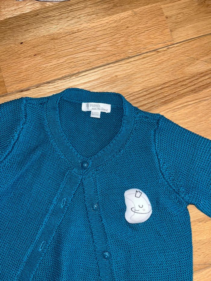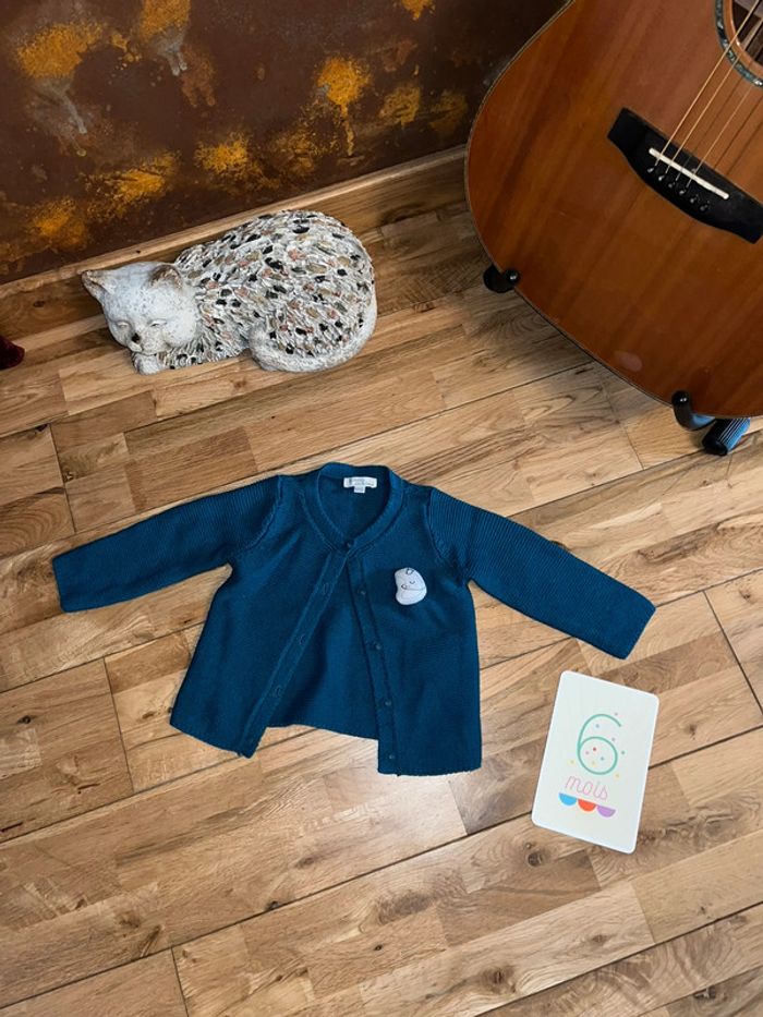 Joli gilet bleu vert canard Très bon état 6 mois/68 cm N’hésitez pas à faire un tour dans mon dressing je fais des prix sur les lots ☺️