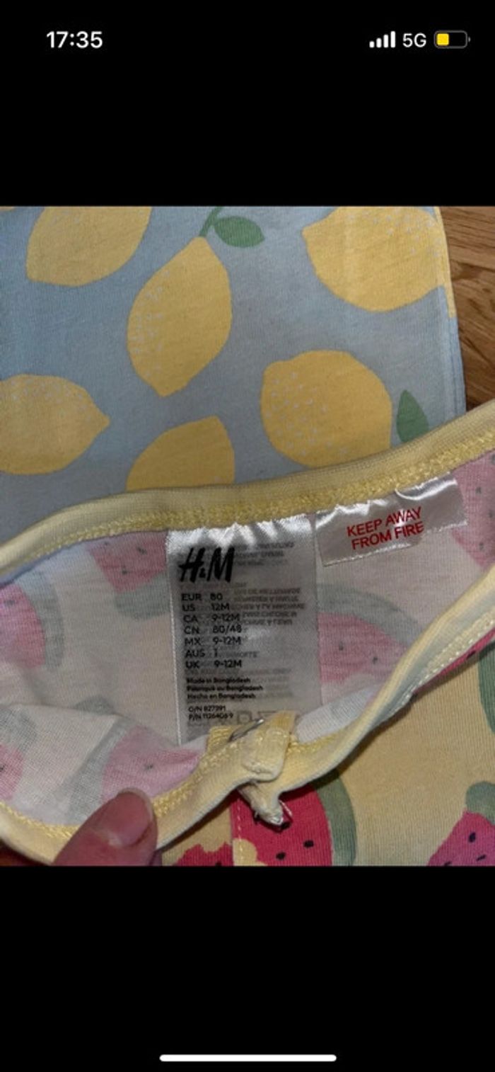 Lot de 2 pyjama été colorés très bon état h&m 12mois80cm