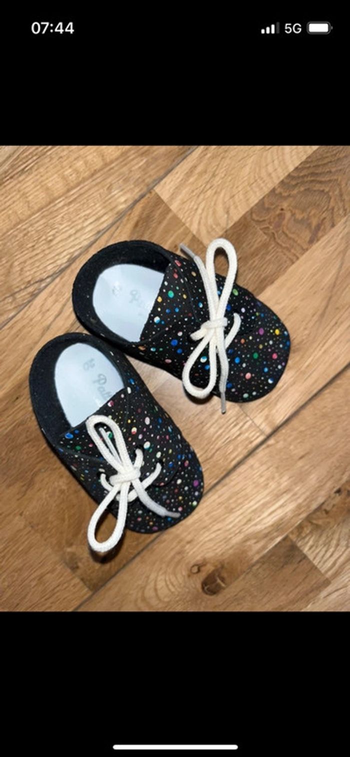 Joli chaussons en daim noir parsemés de paillettes colorées Premiers pas Pattouchs Neufs emballés … oubliés dans un tiroir 20 N’hésitez pas à faire un tour dans mon dressing je fais des prix sur les lots ☺️