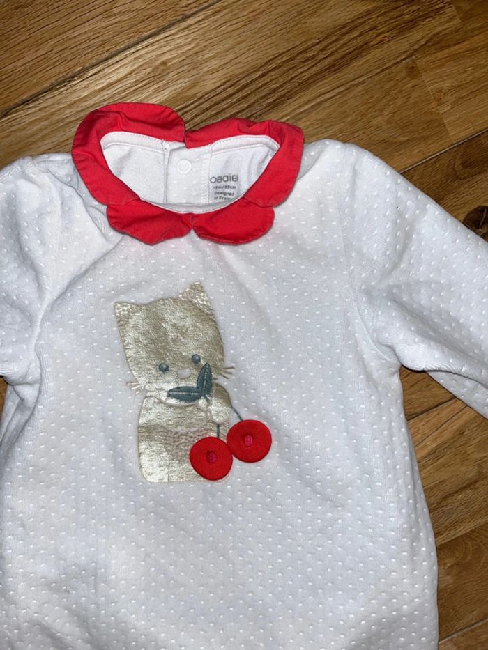 Pyjama velours blanc très bon état motif petit chat obaibi 18 mois/81cm - photo numéro 1
