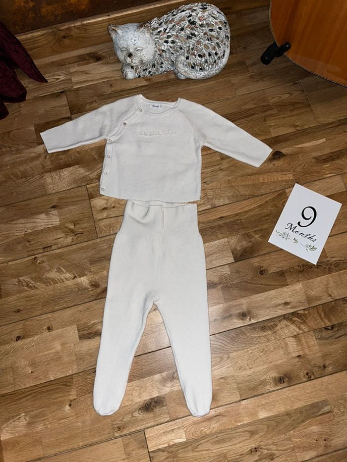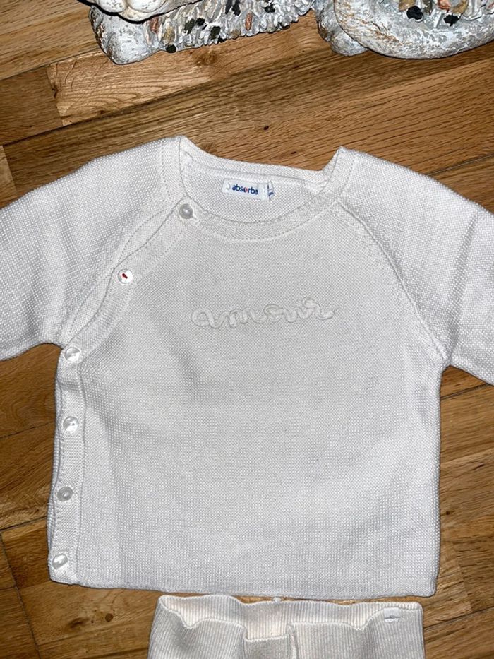 Bel ensemble en maille blanc cassé absorba comme neuf porté une fois 9mois/71cm - photo numéro 1