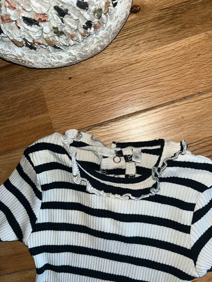 Joli t-shirt ligné noir et beige très bon état 86cm/18mois - photo numéro 2
