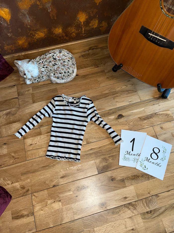 Joli t-shirt ligné noir et beige très bon état 86cm/18mois - photo numéro 1