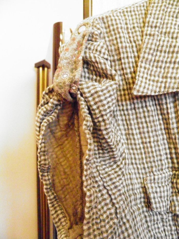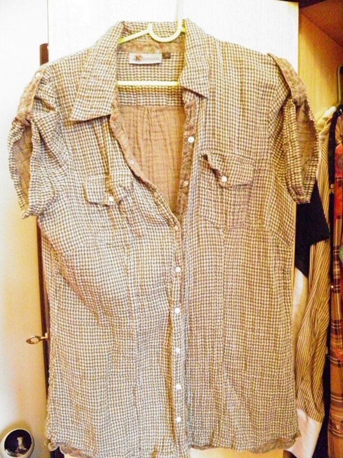 belle chemisette très peu portée, ton kaki clair carreaux et liberty