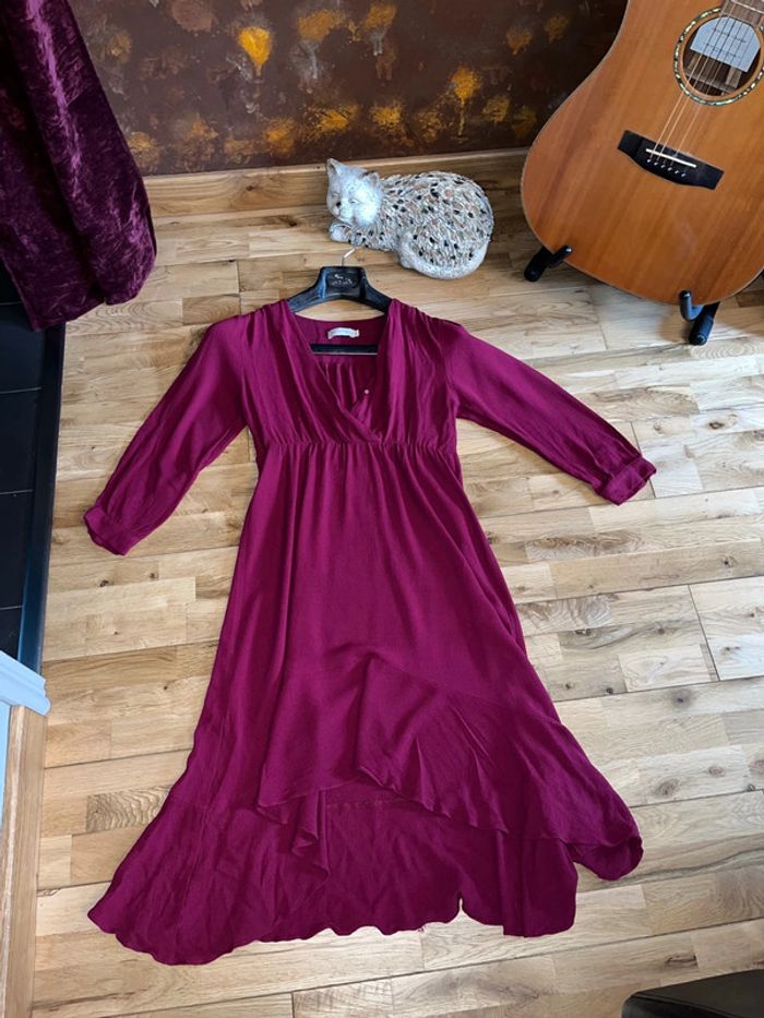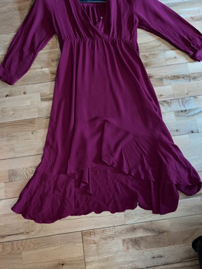 Belle robe bordeau manches 3/4 Plus longue à l’arrière légèrement Resserré sous la poitrine See u soon T0=s Tres Bon etat N’hésitez as a faire un tour dans mon dressing je fais des prix sur les lots ☺️