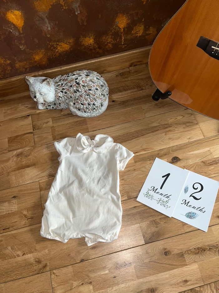 Pyjama beige avec col Claudine vertbaudet très bon état 12mois/74cm - photo numéro 2