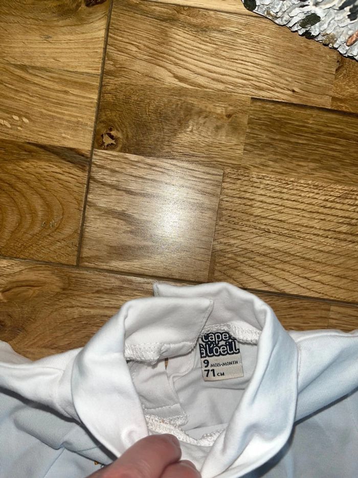 T-shirt blanc col roulé Motif chat TAO 9 mois/71cm N’hésitez pas à faire un tour dans mon dressing je fais des prix sur les lots 😀
