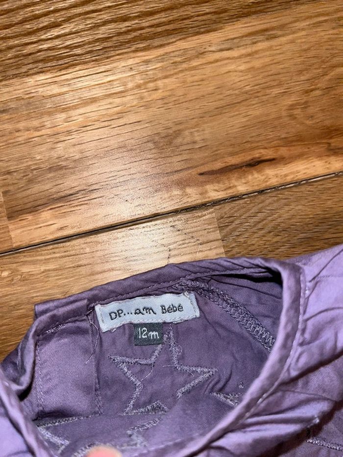 Joli chemisier mauve motifs étoiles très bon état dpm 12mois - photo numéro 1