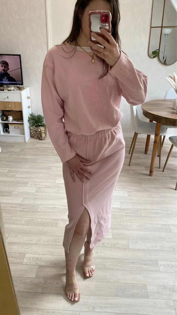 Jupe pull rose mi-longue - photo numéro 2