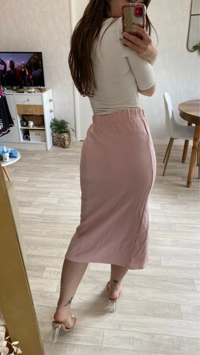 Jupe pull rose mi-longue - photo numéro 4
