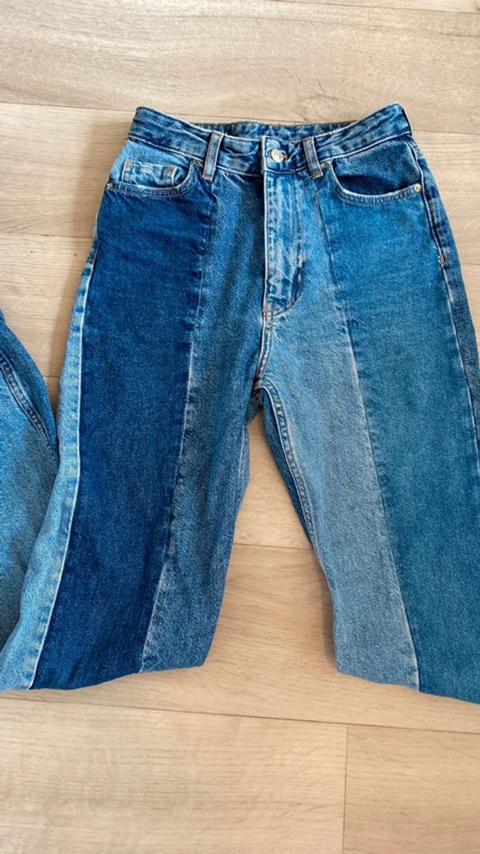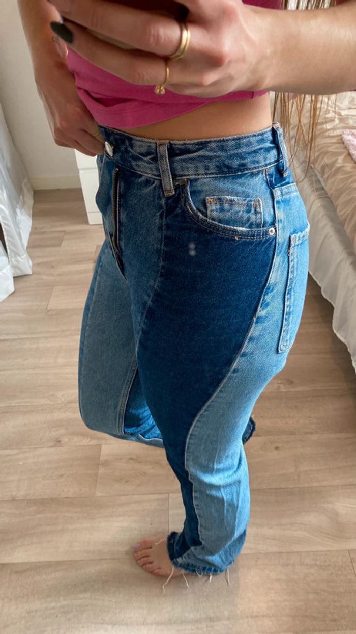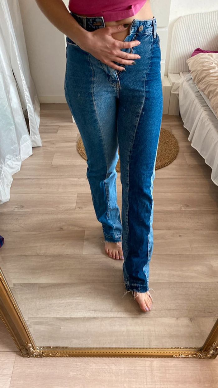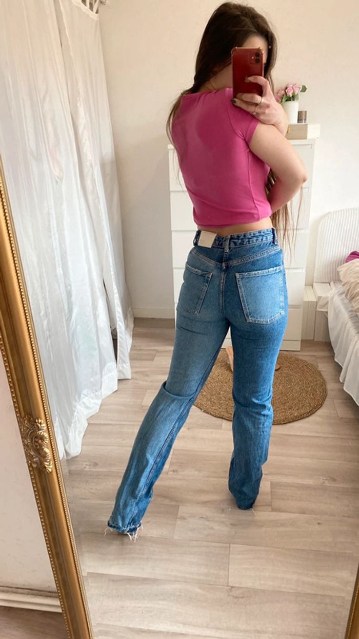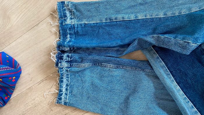 Jeans coupe mom effet effiloché en bas, petit 36 demander moi les mesures si besoin. Beaucoup trop petit pour moi #mojito1Taille36