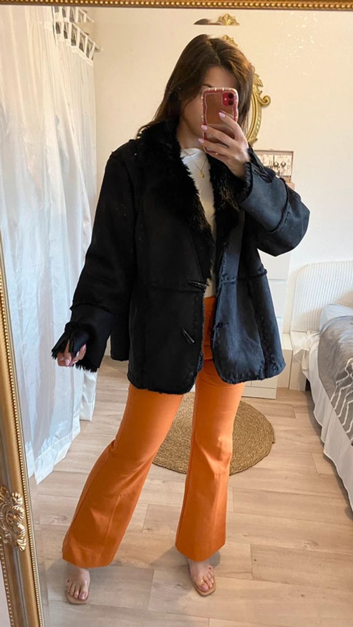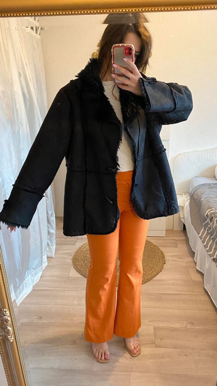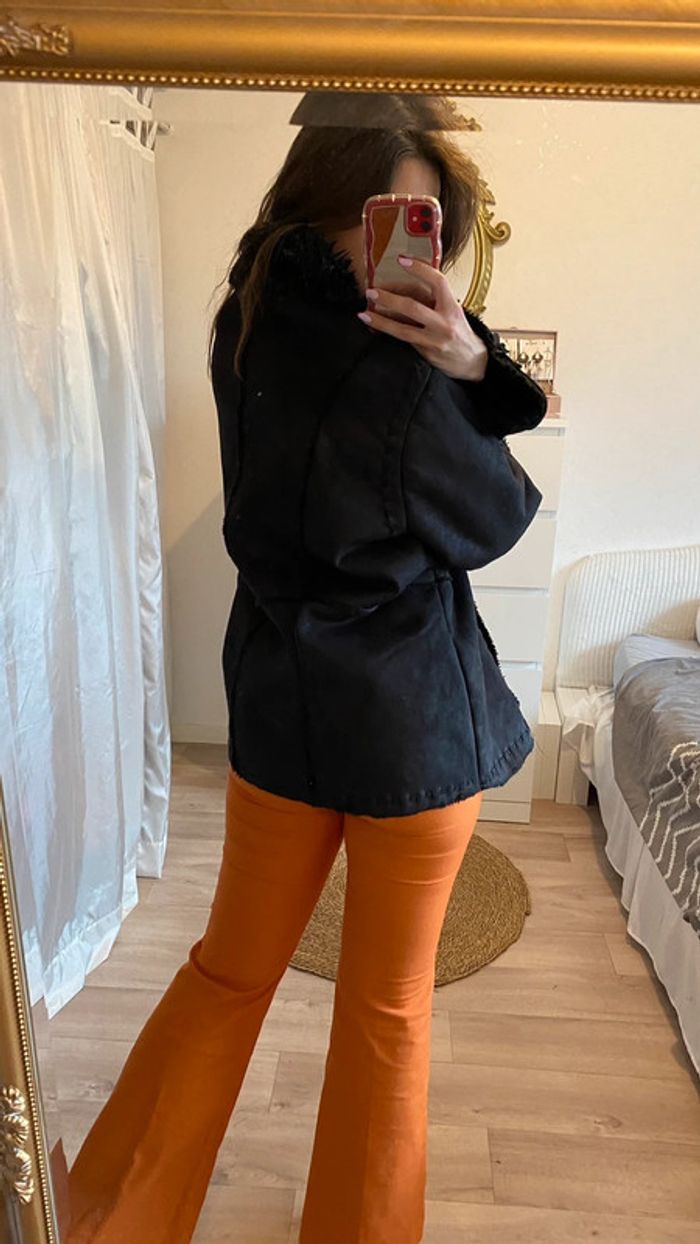 Matière en suedine et moumoute, fourrées à l’intérieur. Très chaud, taille 50-52. Deux poches Me demander les mesures si besoin