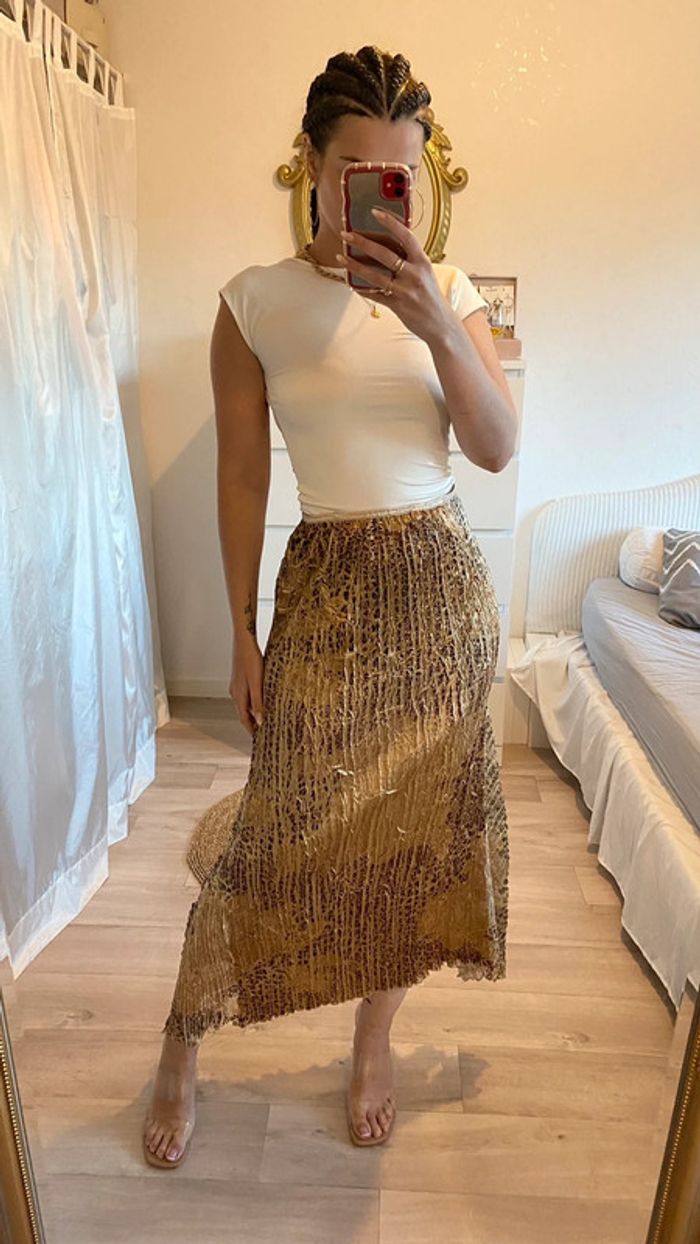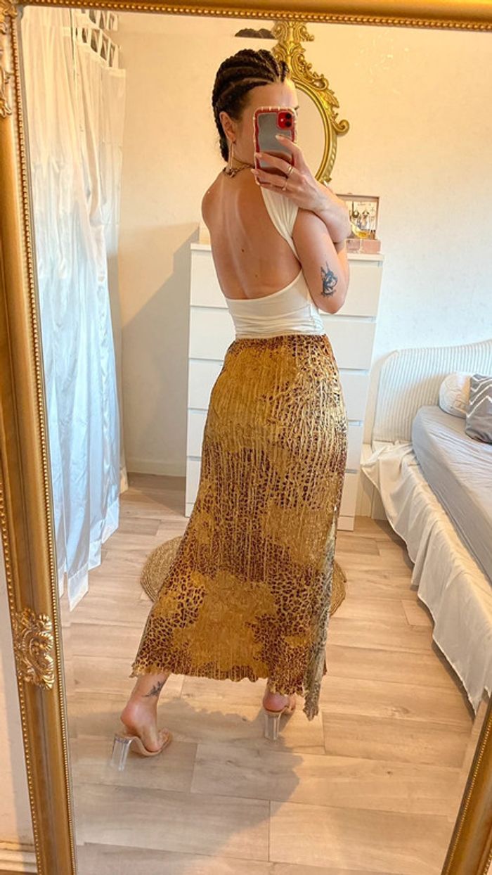 Jupe longue motifs, taille élastique, coupe asymétrique #mojito1Taille36